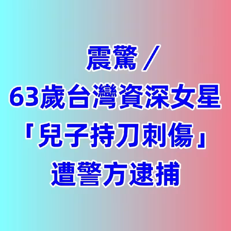 震驚/63歲台灣資深女星「兒子持刀刺傷」 遭警方逮捕!