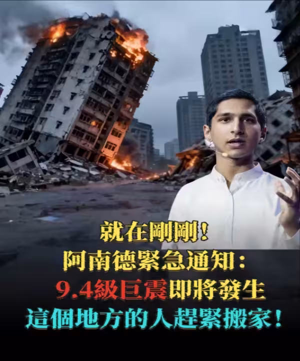 阿南德緊急預言震撼全球:9.4級巨震倒數計時!這地區居民速避難,生死一線間!