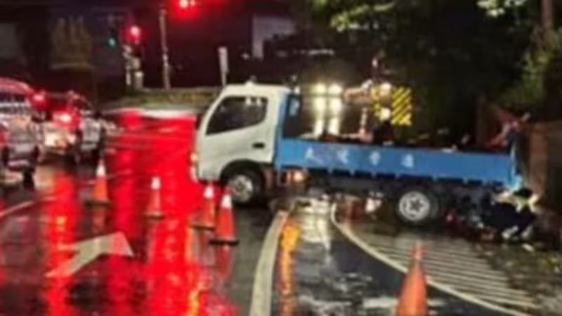 一場大雨引發的車禍意外在新北市淡水造成嚴重傷害。23日晚間近七點,一輛藍色小貨車在淡水興仁路行駛時,因雨天路滑導致失控打滑,撞上分隔島後沖入對向車道,波及一名機車騎士。這起事故造成56歲楊姓女騎士全身多處骨折並有腦出血,目前仍在住院治療中。事發當時,小貨車車尾突然偏移,甩尾後撞入逆向車道,車斗瞬間騰空並冒出紅色火光,整個過程被對向車道的駕駛目睹。
