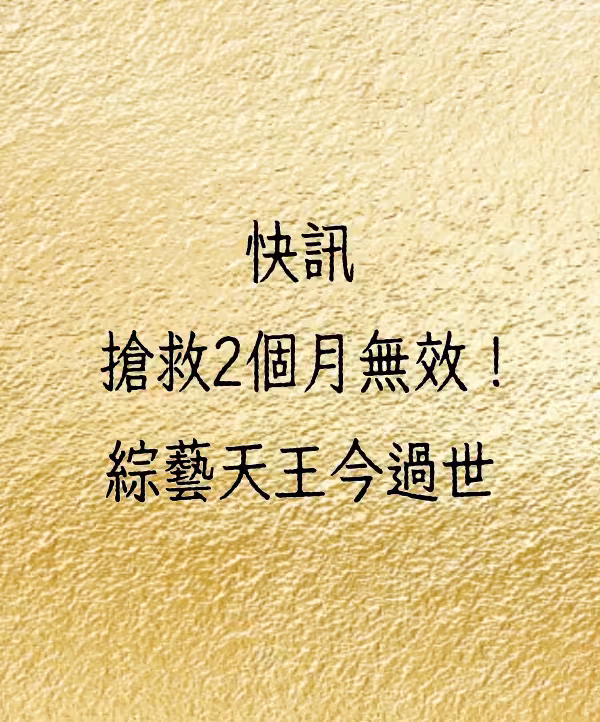 快訊/搶救2個月無效!綜藝天王今過世。