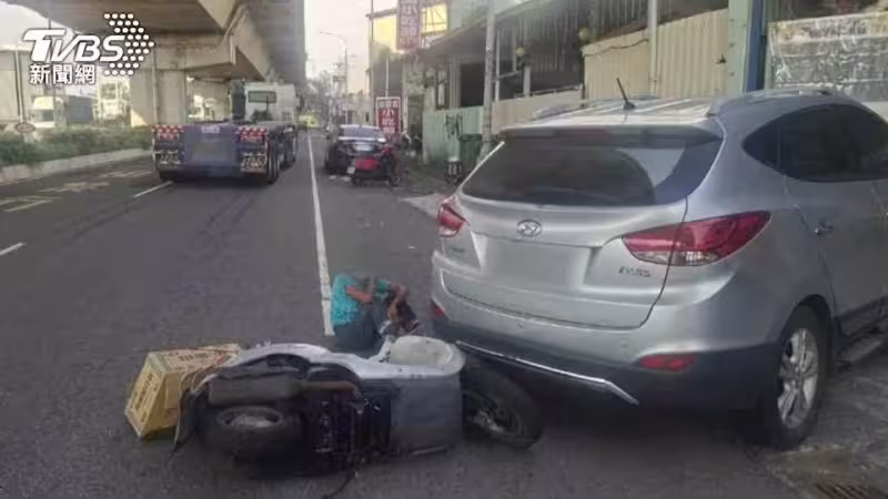 驚險!78歲女騎士為閃路邊違停車輛 遭大貨車擦撞險卷車底