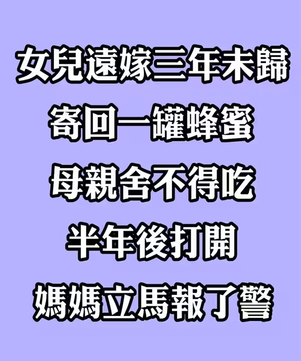 女兒遠嫁國外三年未歸,寄回一罐蜂蜜母親捨不得吃,半年後打開報了警
