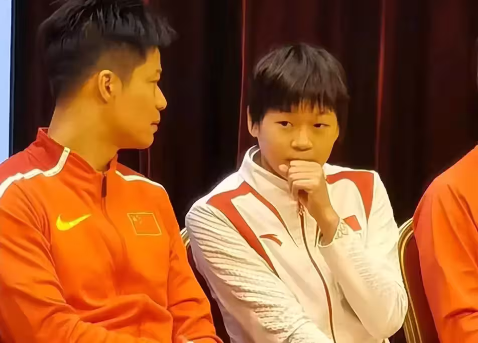 十幾歲的全紅嬋帶著點稚嫩的好奇心,偷偷地揣摸了蘇炳添的一條腿。