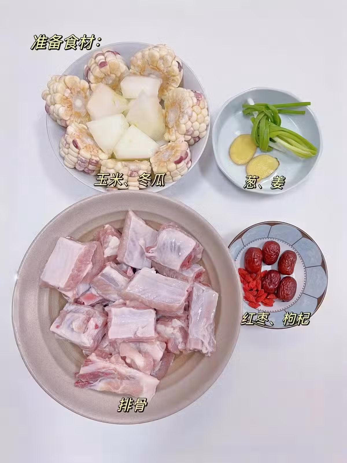 ②排骨倒入砂鍋 +蔥姜紅棗十水煮開+玉米煮
