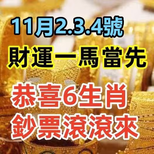 11月2.3.4號財運一馬當先,恭喜6生肖鈔票滾滾來!