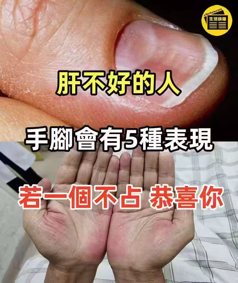肝不好的人,手腳會有5種表現,如果一個不占,恭喜你,肝臟很健康!