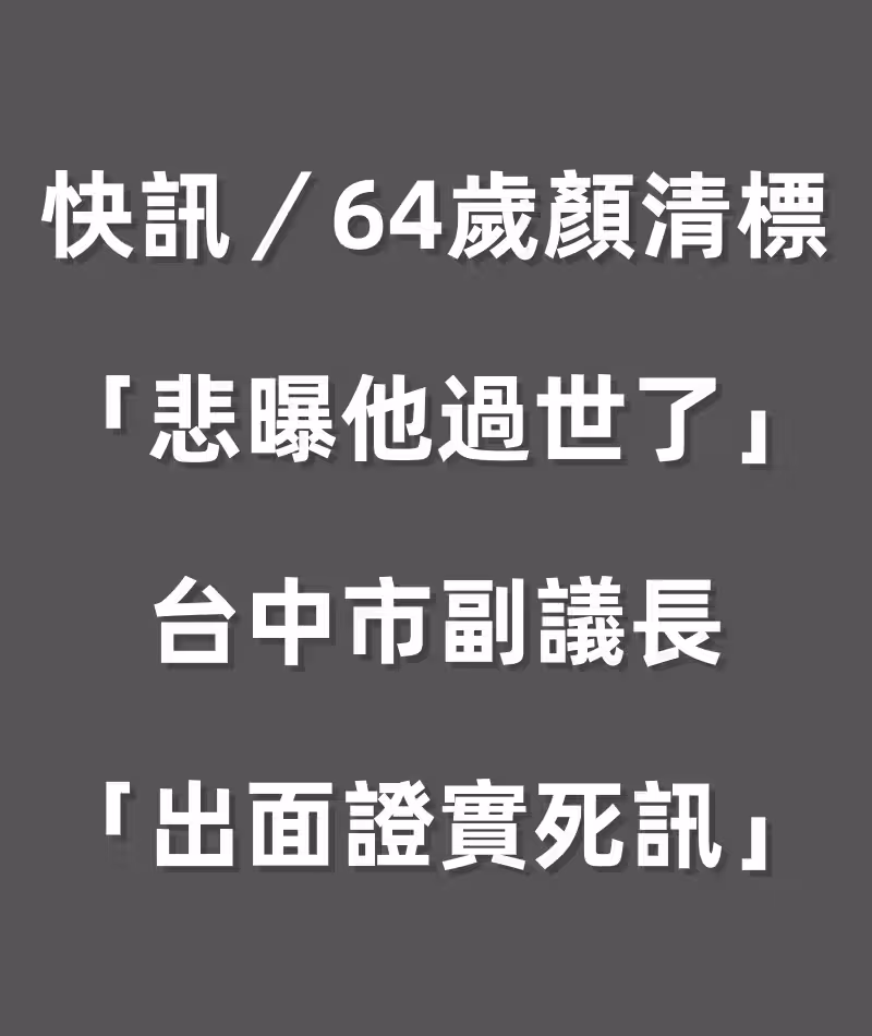 快訊/64歲顏清標「悲曝他過世了」!!台中市副議長「出面證實死訊」