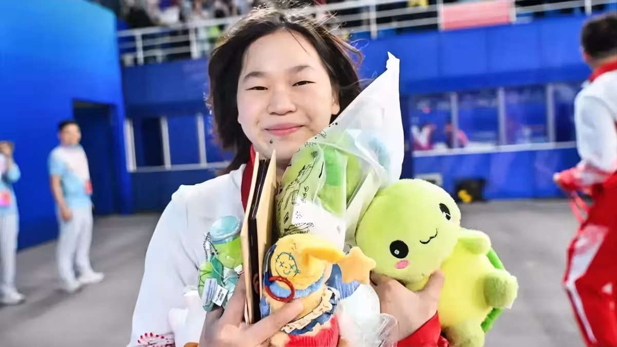 全紅嬋現場娃娃雨下的太大,何威儀教練秒變全紅嬋的娃娃搬運工:秒變小烏龜專業戶