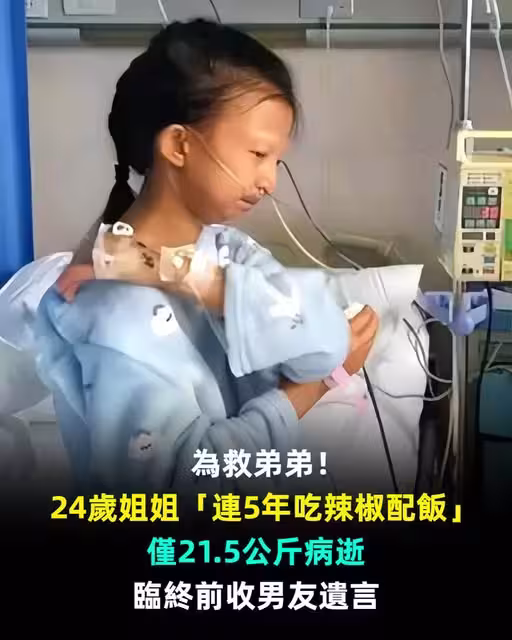 為救弟弟!24歲姐姐「連5年吃辣椒配飯」僅21.5公斤病逝,臨終前收男友遺言