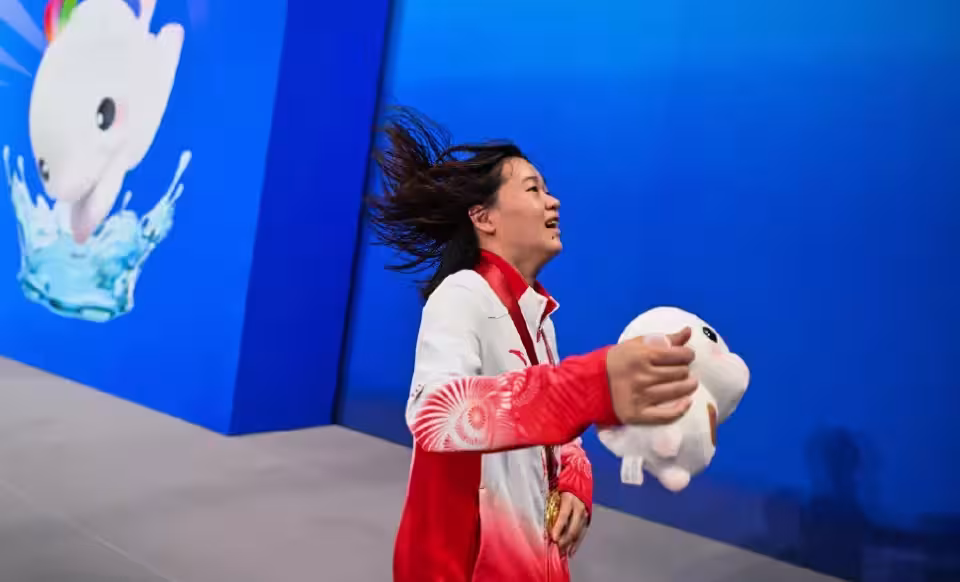 唯一可惜的就是大灣區全運會,全紅嬋只參加雙人和團體比賽,我們在單人10米台項目上見不到她了。