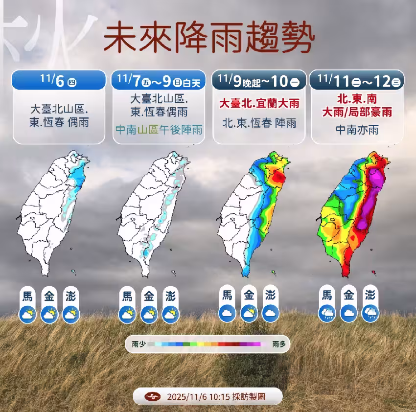 下周四(13)下午起,鳳凰颱風將減弱遠離,天氣將由南往北逐漸好轉。
