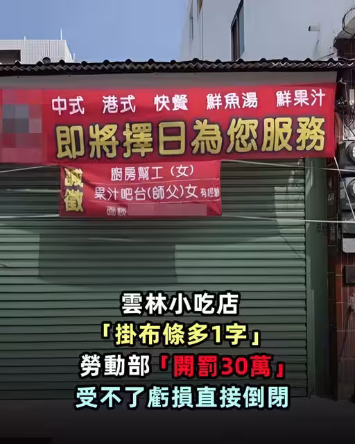 雲林小吃店還沒開業「掛布條徵人多1字」!勞動部「開罰30萬」受不了虧損直接倒閉…