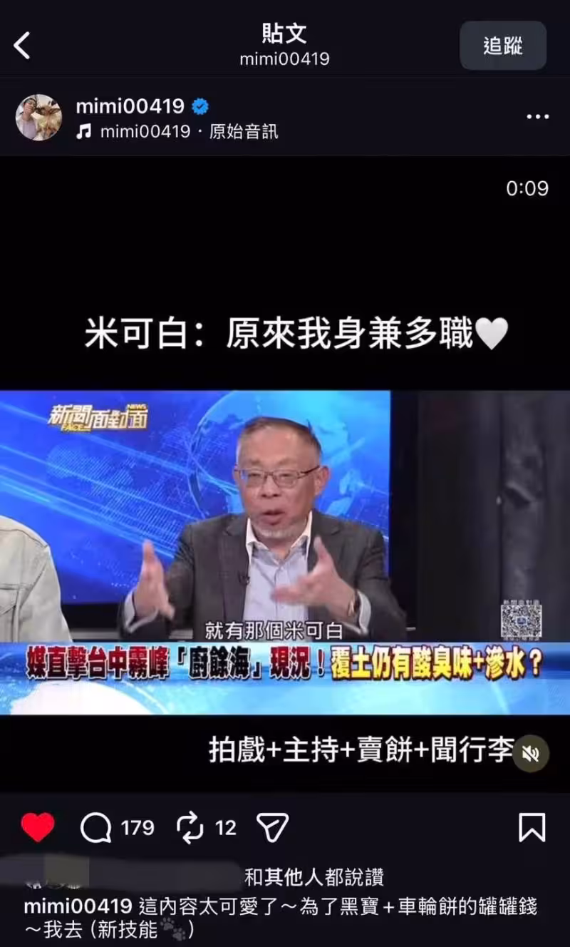 米可白已經不是第一次被誤認為狗,多年前她帶著愛犬錢錢參加活動,侯友宜一邊摸錢錢一邊說:「米可白~」當下米可白激動地糾正,「他不是米可白,我才是!」這段至今仍是一個迷因哏。