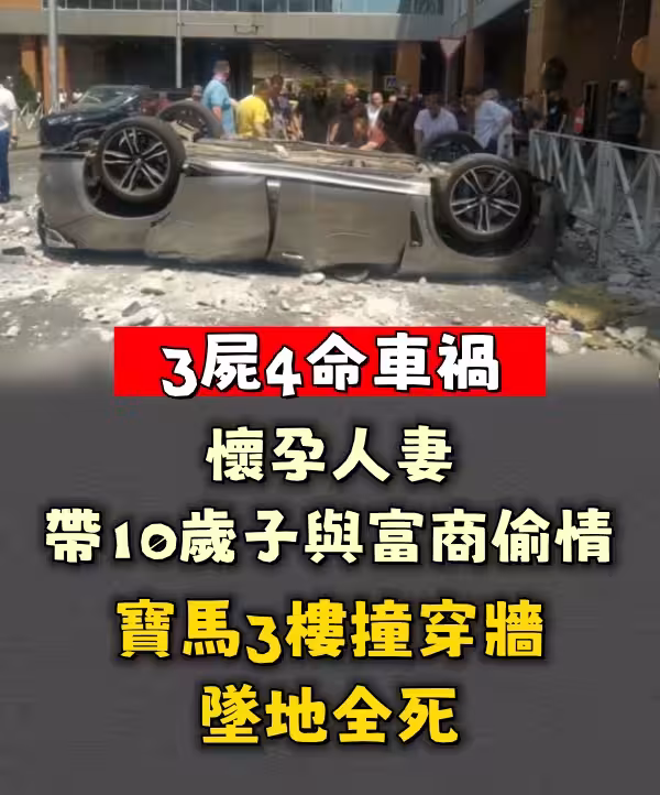 快訊/3屍4命車禍│懷孕人妻帶10歲子與富商偷 情 寶馬3樓撞穿牆墜地全死了