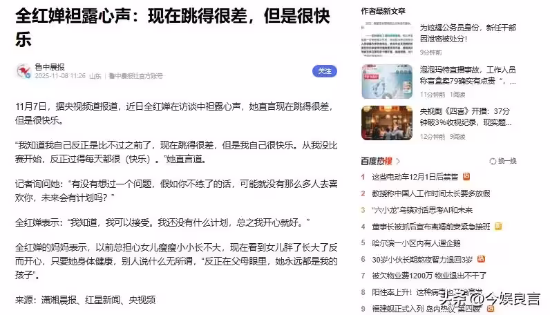 別讓冠軍寒了心!入學僅4天,噁心的事發生,官媒:全紅嬋自己決定