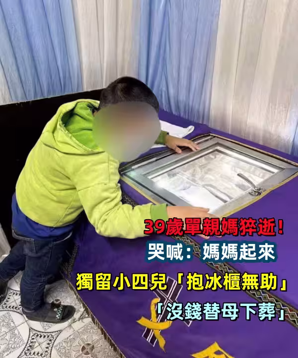 39歲單親媽猝逝!獨留小四兒「抱冰櫃無助」哭喊:媽媽起來,「沒錢替母下葬...」