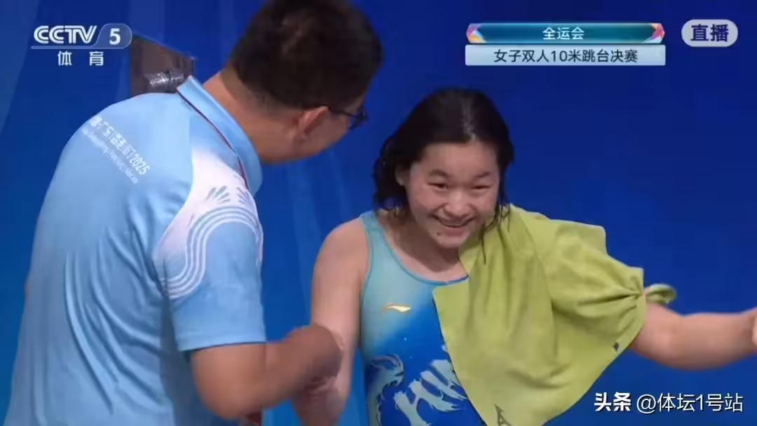 值得一提的是,全紅嬋此次全運會是帶傷參賽的,腳踝等多個部位都有傷勢。在訓練過程中,她需要依賴肌貼來緩解疼痛。她坦言自己的傷情恢復得並不理想,但她始終面帶微笑,積極地面對觀眾。她的教練何威儀透露,全紅嬋一直默默堅持在傷痛中訓練:「她全身都是傷,但從不抱怨,總是貼著冰貼、肌貼堅持完成比賽。」