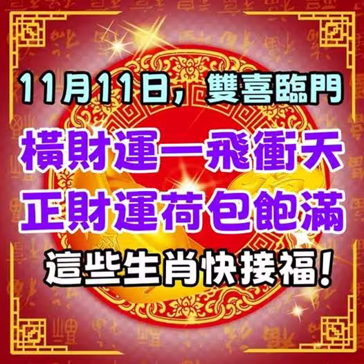 11月11日,雙喜臨門,橫財運一飛沖天,正財運荷包飽滿,這些生肖快接福!!