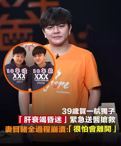 39歲賀一航獨子,「肝衰竭昏迷」緊急送醫搶救,妻目睹全過程崩潰:「很怕會離開」