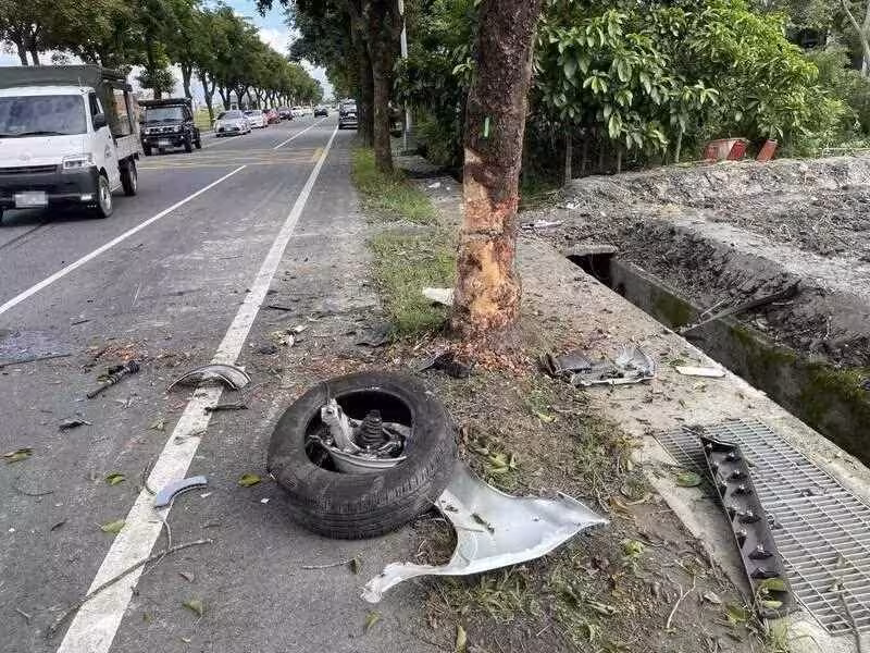 宜蘭5親友慘烈交通事故!休旅車撞路樹1輪不見 1人命危