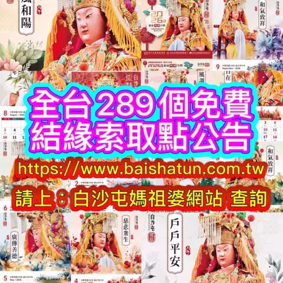 免費領取白沙屯媽祖年曆和月曆,民眾可上媽祖婆網站查詢領取地點。