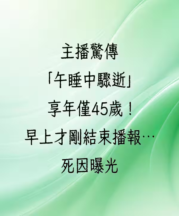 主播驚傳「午睡中驟逝」享年僅45歲!早上才剛結束播報…死因曝光!
