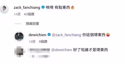 ▲范姜彥豐當時留言「有點東西」,如今看來像是神預言,在酸兩人有私情。(圖/簡廷芮IG@dewichien)