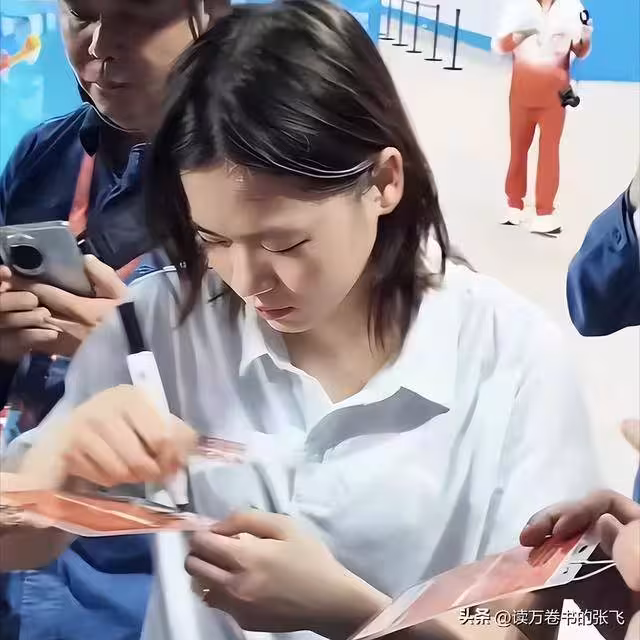 比賽結束後還有個溫暖的小插曲:全紅嬋在離場時,耐心地為現場每位工作人員簽名。