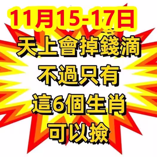 11月15-17日天上會掉錢滴,不過只有這6個生肖可以撿