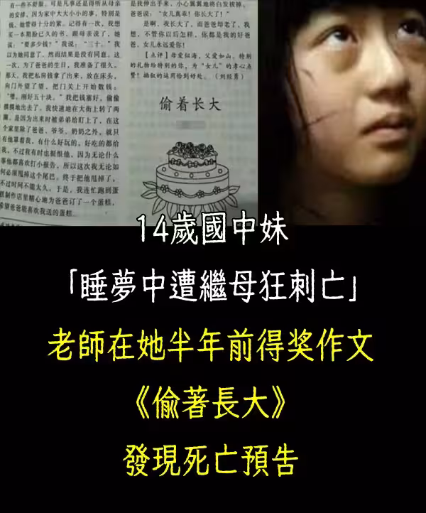 14歲國中妹「睡夢中遭繼母狂刺亡」,老師在她的半年前得獎作文《偷著長大》發現死.亡預告!