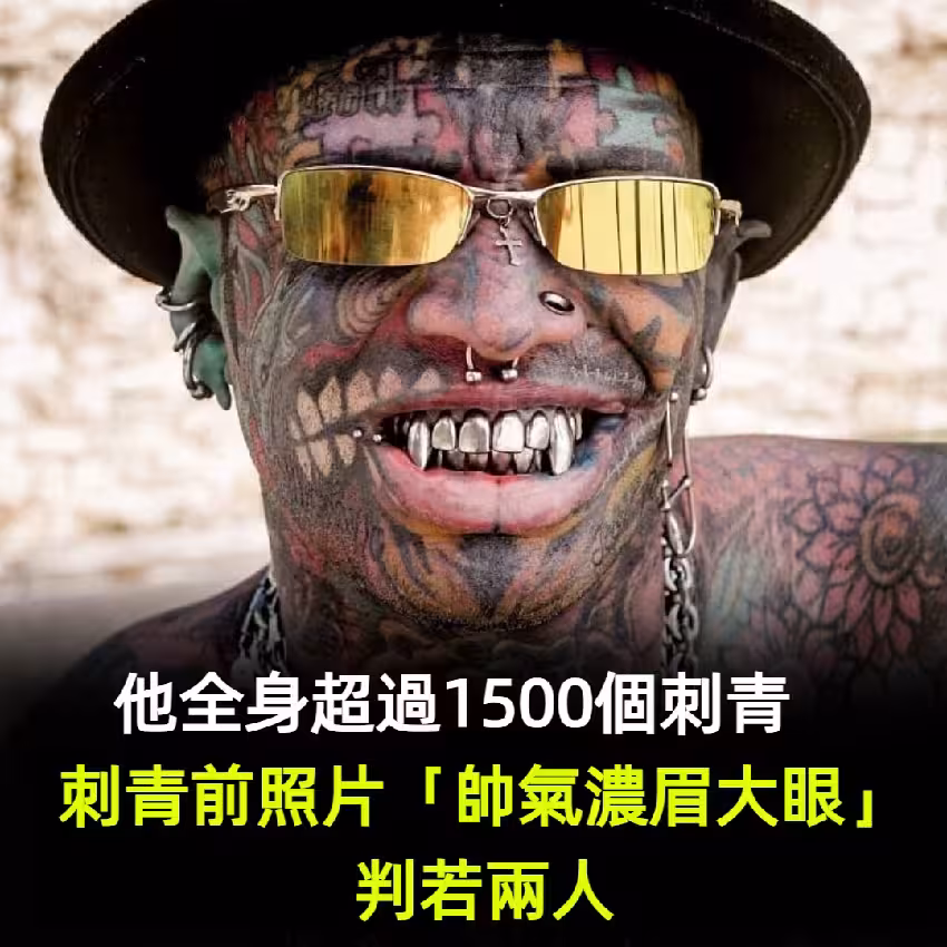 超狂男子「全身超過1500個刺青」牙齦、眼球都沒放過! 曝光未刺青照片「濃眉大眼真面目」判若兩人