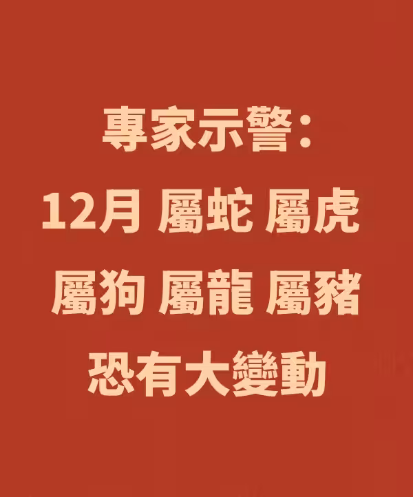 專家示警:12月「屬蛇 屬虎 屬狗 屬龍 屬豬」恐有大變動