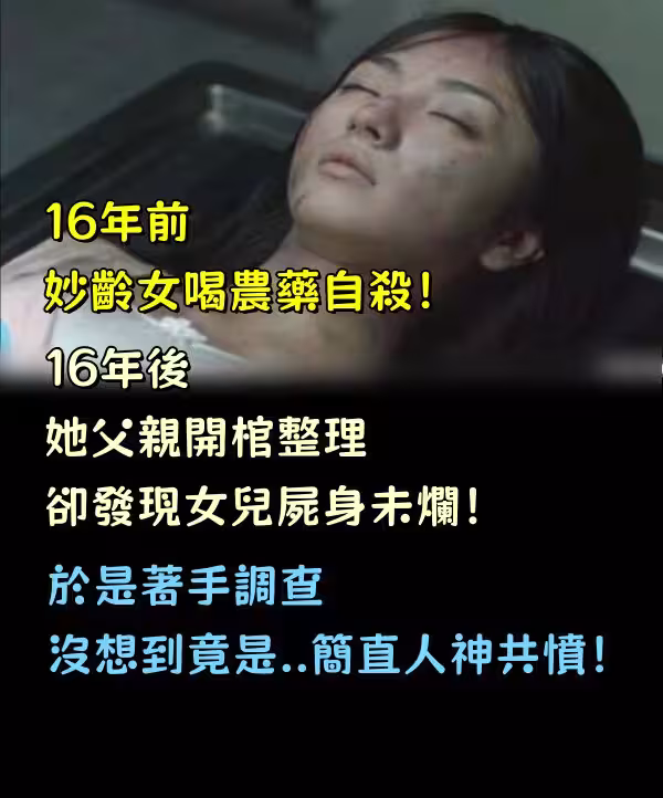 16年前,妙齡女喝農藥自殺!16年後,她父親開棺整理,卻發現女兒屍身未爛!於是著手調查,沒想到竟是....簡直人神共憤!