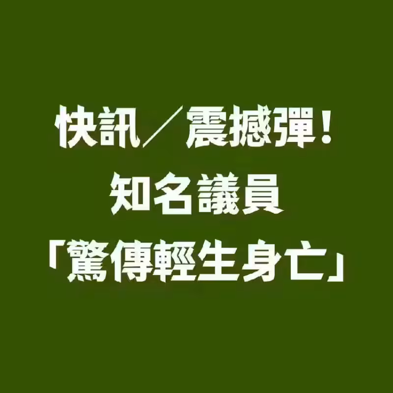 快訊/震撼彈!知名議員「驚傳輕生身亡!」
