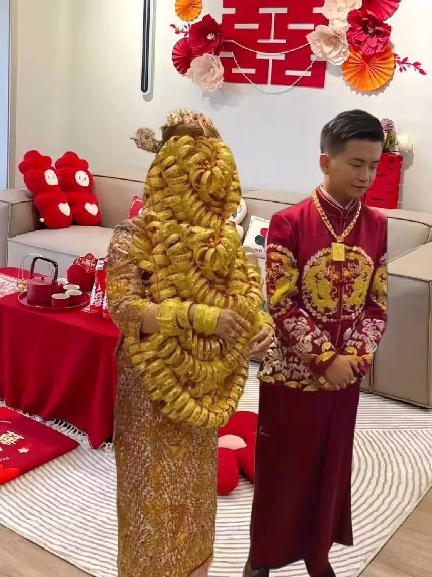 新娘全身蓋滿金鐲「看不到臉」!他轟「炫富太過分」…親友曝「真相」全網傻眼:誤會大了