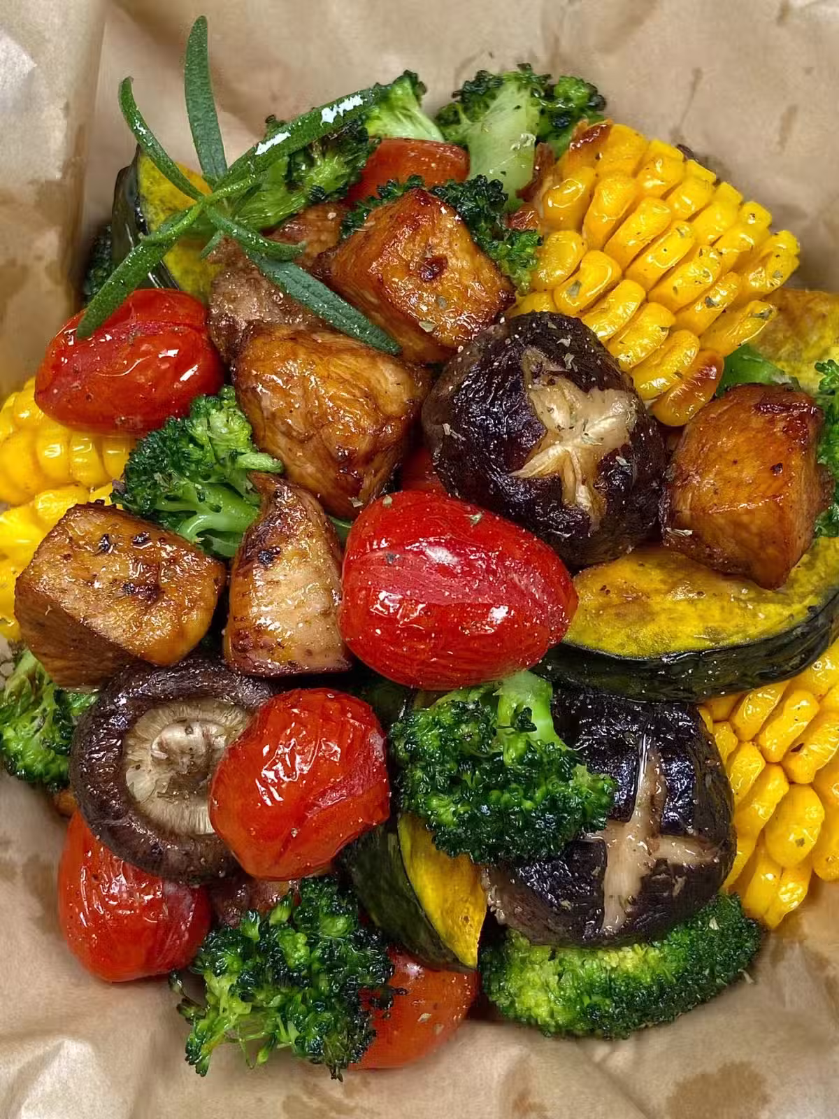 咱就是說又是被誇的一天呢!!嘎嘎香,烤西蘭花真的yyds ,玉米也好甜,雞胸肉焦香焦香的,老香了!!