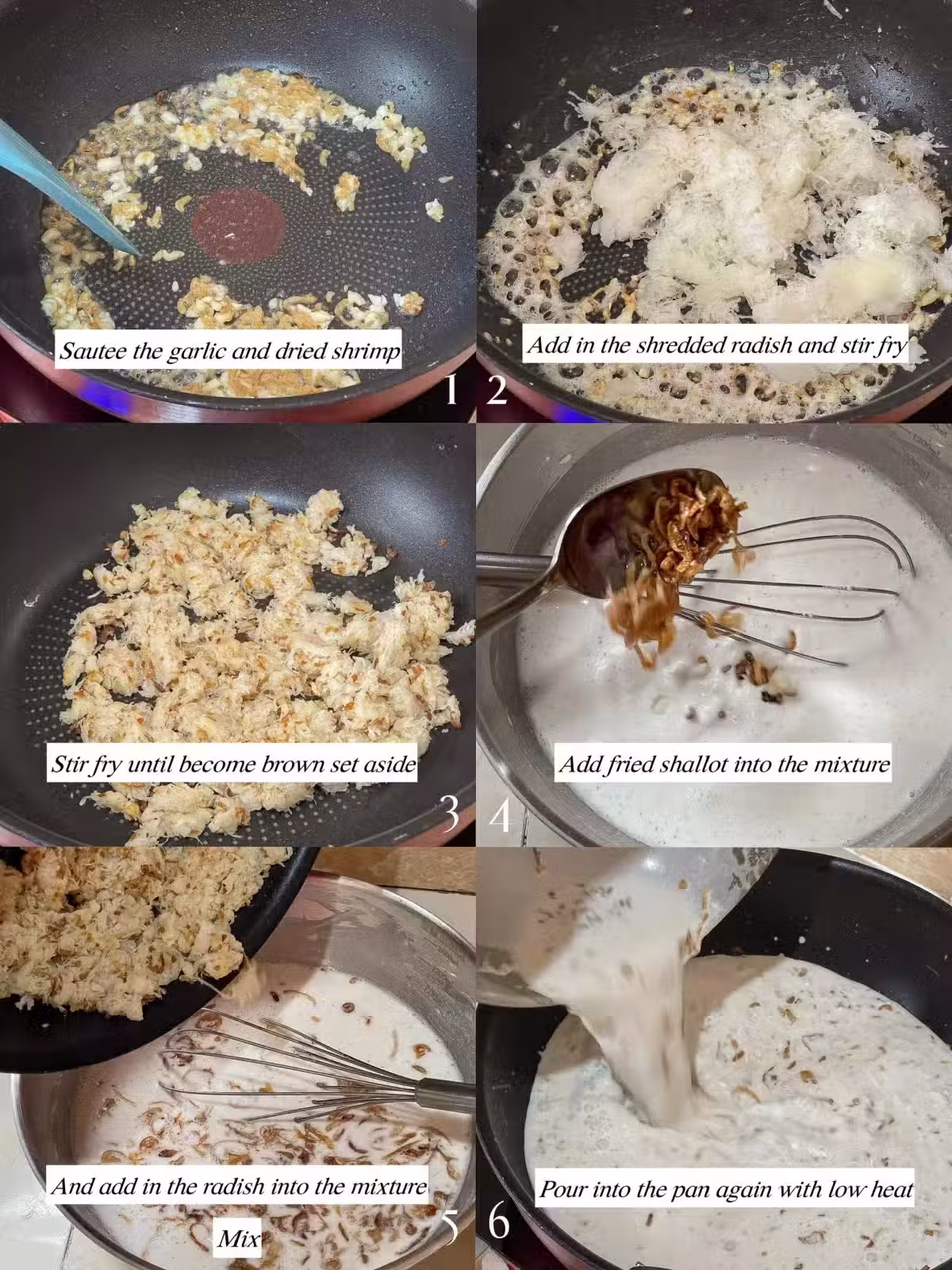 3.把麵糊倒入鍋內 炒至粘稠