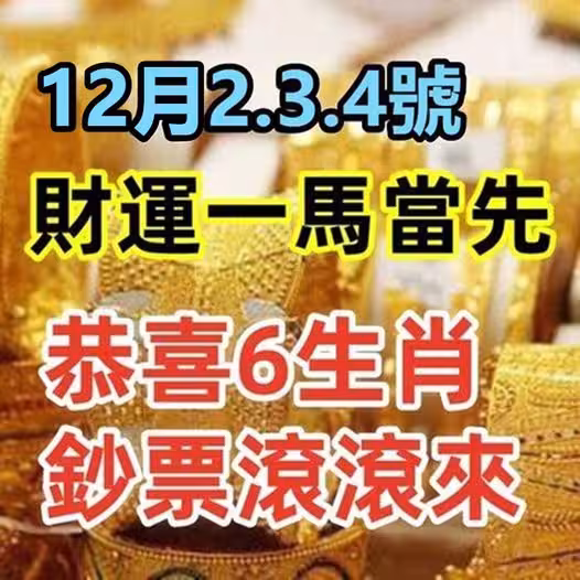 12月2.3.4號財運一馬當先,恭喜6生肖鈔票滾滾來~