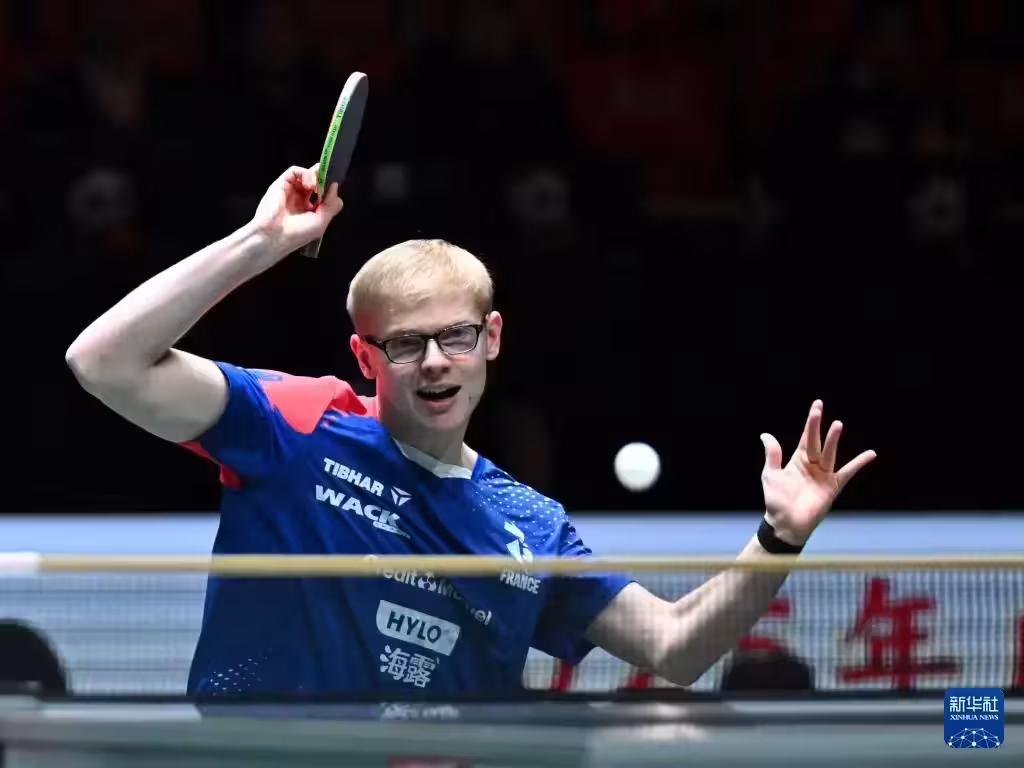 12月4日,法國隊選手費利克斯·勒布倫在男單比賽中。最終,他2比1戰勝中國隊選手梁靖崑。