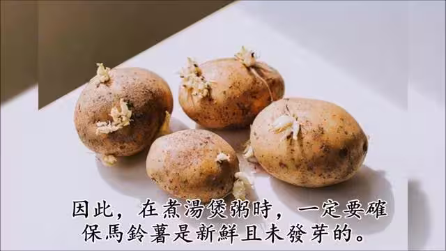 因此,在煮湯煲粥時一定要確保馬鈴薯是新鮮且未發芽的。