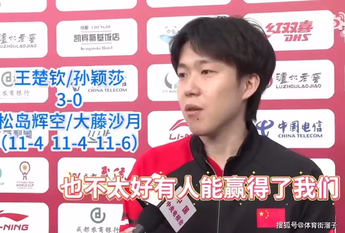這樣的言論也並非誇大其詞,在這次的混合團體世界盃上,中國隊以11連勝的成績奪冠,而王楚欽和孫穎莎出戰了其中的6場混雙比賽,結果他們全部都是3-0橫掃對手,可以說沒有給對手任何的機會。