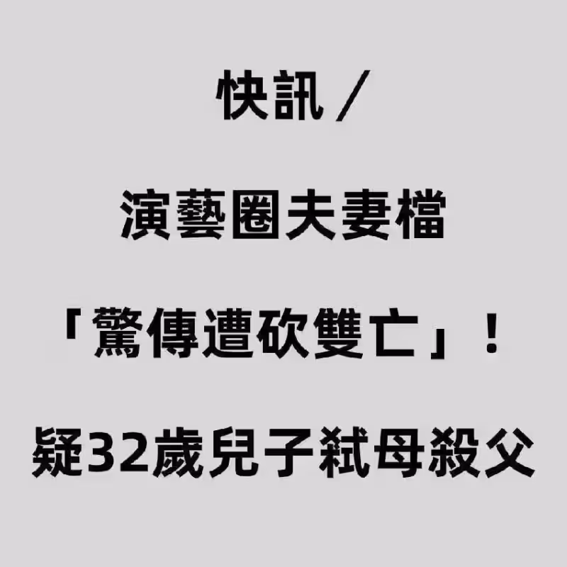 快訊/演藝圈夫妻檔「驚傳遭砍雙亡」! 疑32歲兒子弒母殺父