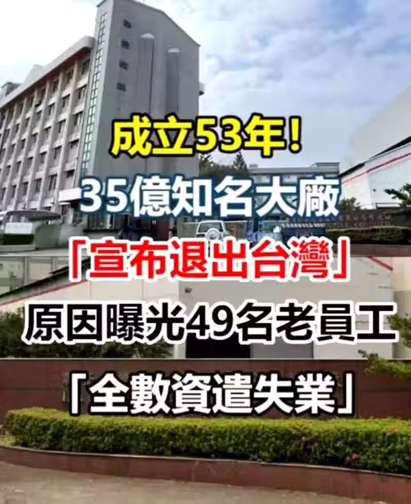 成立53年!35億知名大廠「宣布退出台灣」原因曝光 49名老員工 「全數資遣失業」!