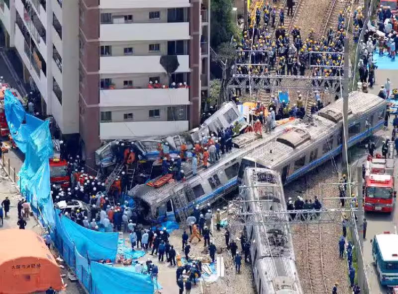 日本列車出軌釀107死562傷!2節車廂「撞入公寓大樓」 出事原因曝光 「駕駛害怕被罵!」