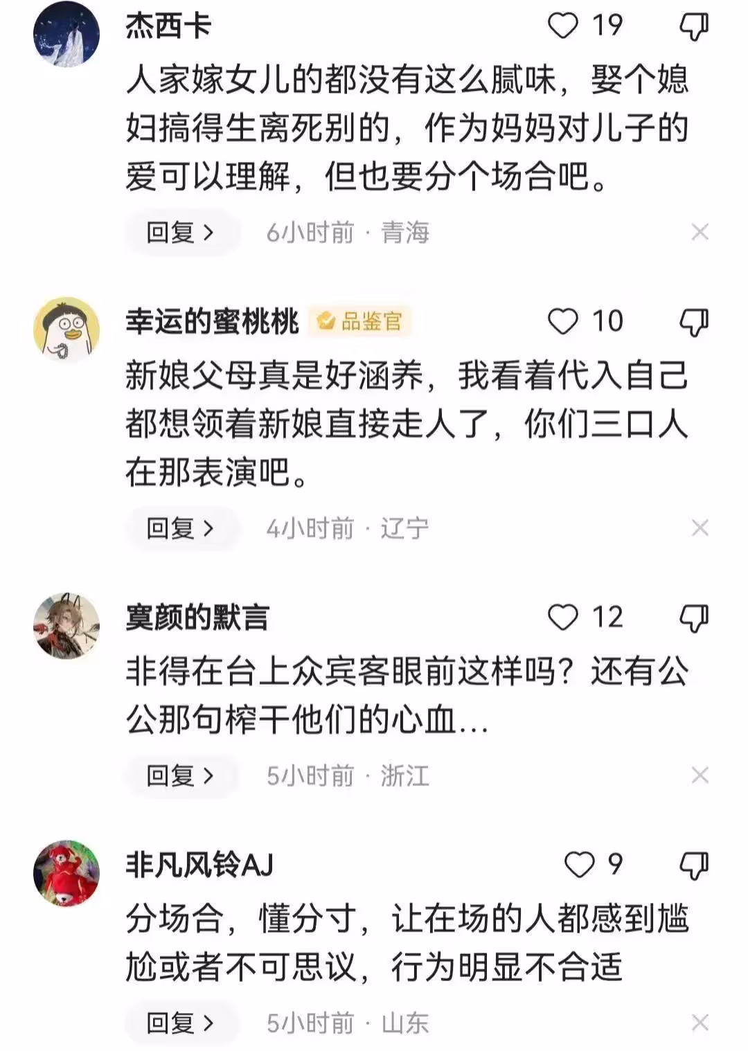 這番話徹底讓新娘心涼了。她終於意識到,這個男人心裡最重要的永遠是母親,而自己,只是婚禮上的一個「配角」。
