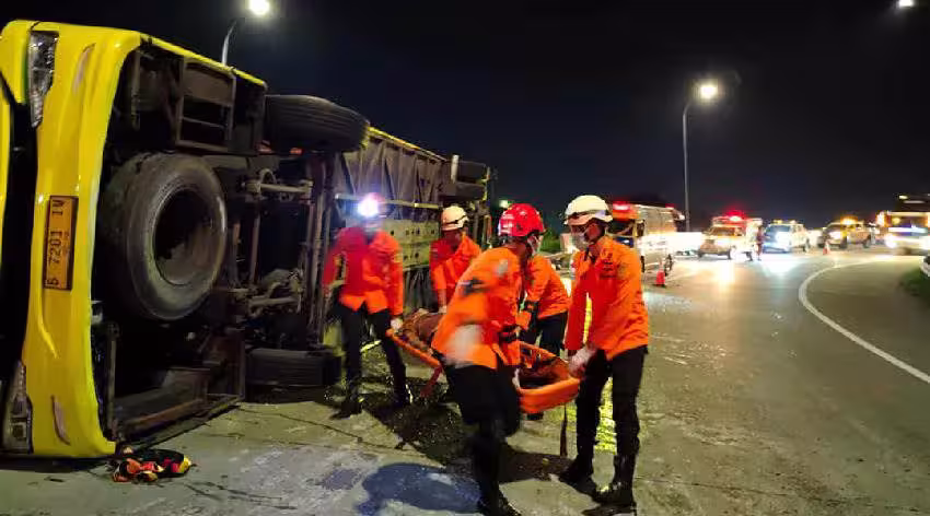 從電視新聞播出的畫面可見,黃色車身的巴士橫躺路邊,大批搜救人員、警察及民眾聚集搶救,多輛救護車來回奔波運送傷者與罹難者大體,整起事件導致至少16人喪命、18人挂彩送醫,18名受傷乘客被緊急分送至兩間醫院救治,其中5人傷勢嚴重、情況危急