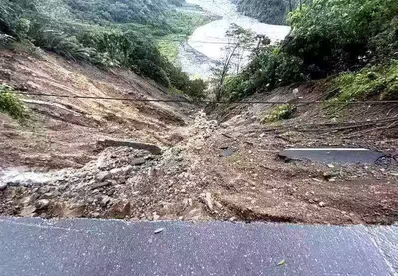 據悉,43歲蔡姓貨車司機,要從桃源區前往寶來,與一家5口會車,大雨視線不佳,NISSAN自小客車調整方向準備繼續行駛,等貨車司機看到對向車道路基已掏空,還來不及提醒,就眼睜睜看著一家子傾斜墜落深不見底山谷;