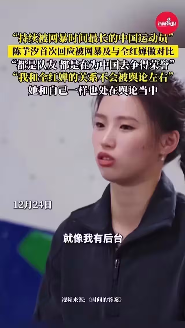陳芋汐:我害怕,然後第一時間反映了隊里。他們一直說的比較多的可能是,就像我有後台,就會覺得我的家庭條件好,就因為我爸爸媽媽是教練,比賽比得好就是跟裁判上了手段,比得不好,國內比賽又不行或者國際比賽又不行,無論說比得好不好,其實都會被一些無端的理由去,被造謠。其實還是希望我們所有的運動員都能被正確的看待,你不能去用一些謠言,無端造謠一些事情去詆毀運動員所有的努力和付出。