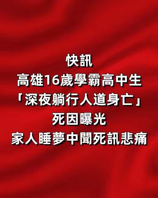 快訊/高雄16歲學霸高中生「深夜躺行人道身亡」死因曝光 家人睡夢中聞死訊悲痛