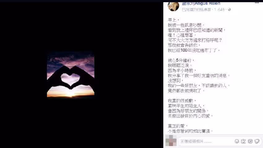 阿翔突PO「醫院自拍憔悴」嚇到粉絲!認了「摯愛檢查出腦瘤」:一收工就趕去醫院陪床